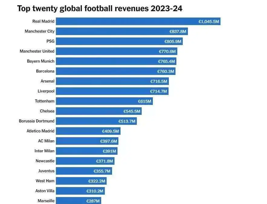 五大联赛俱乐部的核心收入,主要来自转播分成与比赛日门票。英超凭借全球化转播体系,在这方面优势明显,这也解释了为何中游英超球队的财政规模,往往高于其他联赛豪门。